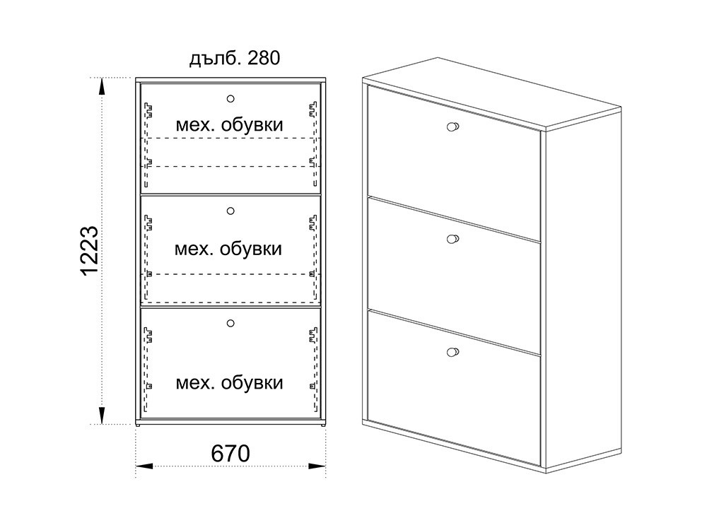 Шкаф за обувки Сити 4042 е от серия български мебели за антре и е подходящ за малки по размер помещения в които няма място за големи портманта. Моделът ви дава възможност да го съчетаете с закачалка и огледало.