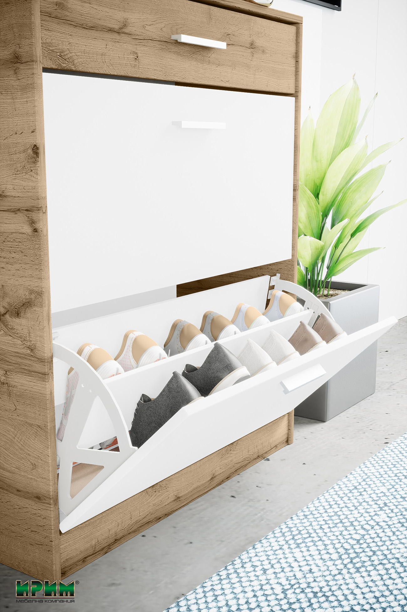 • Шкафа за обувки двуредов за от 8 до 12 чифта обувки.