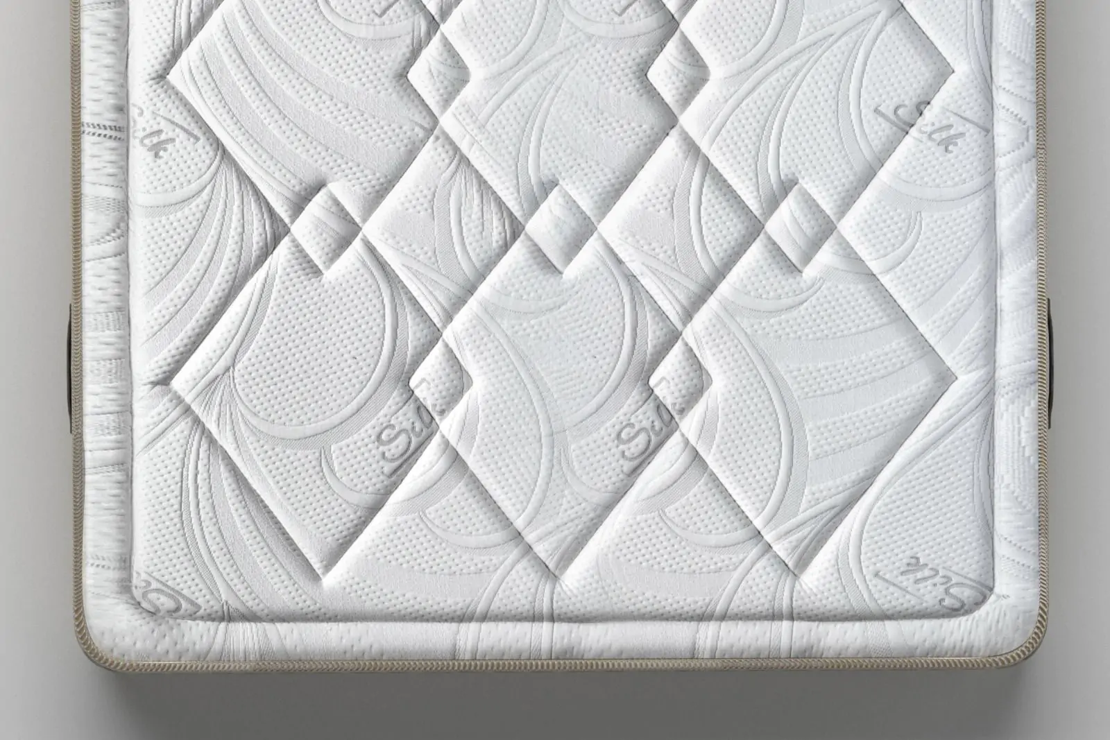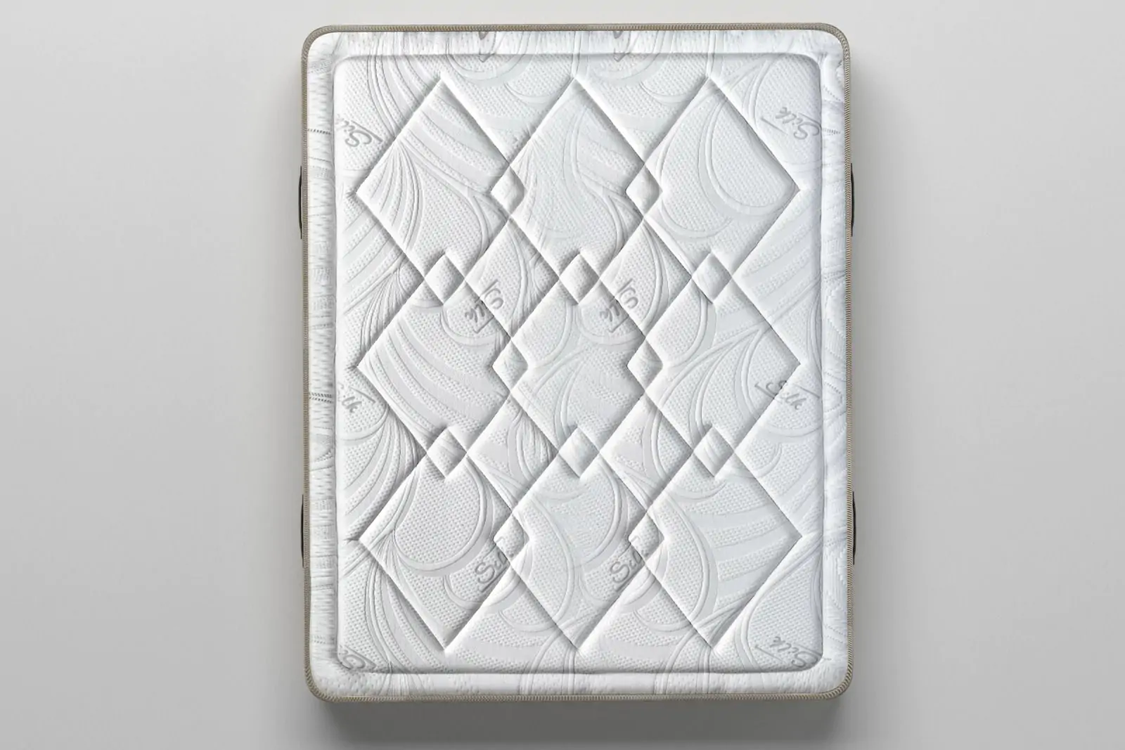 Двулицевият матрак Silk Hybrid впечатлява още от пръв поглед със своя изтънчен външен вид. Горната му част е облечена в специален текстил Silk – фин, лъскав и елегантен плат с нежен релеф, оформен в симетрични ромбове и елегантни вълни, които създават усещане за изящество и стил.