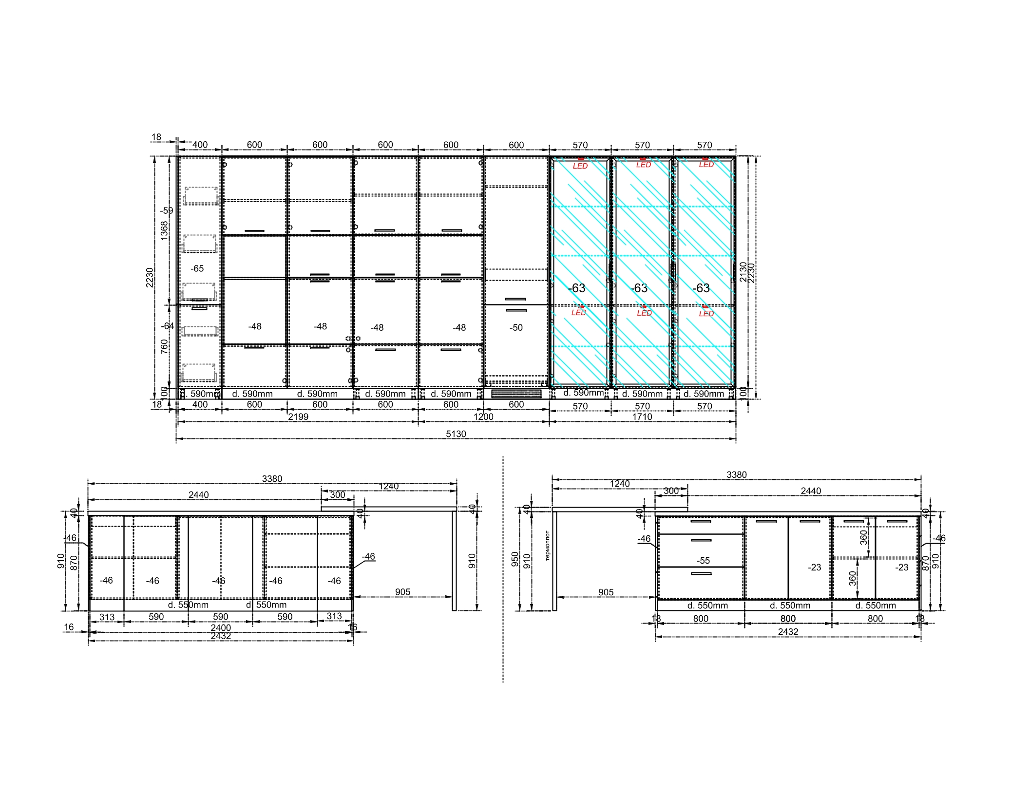 Ширина 5130 мм. / Дълбочина 590 мм./ Височина 2230 мм.