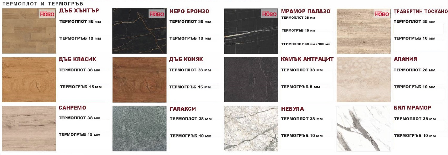 ✔ плотове и термогърбове – каменна визия, дърво или класически компактен ламинат;
