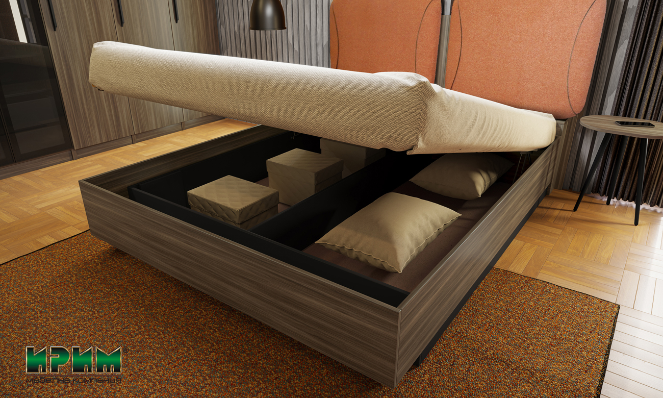 ● Спално легло с механизъм за повдигане газови амортисьори, с възможност за двулицев матрак.