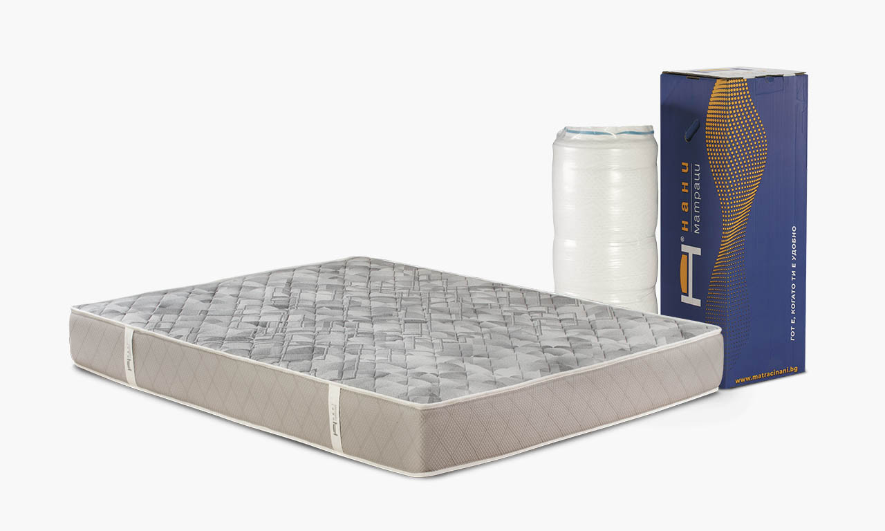 Допълнително впечатление прави компактната ролирана форма на матрака и кутията, което е практичен подход към съхранение и транспорт, без да се навлиза в излишни детайли.