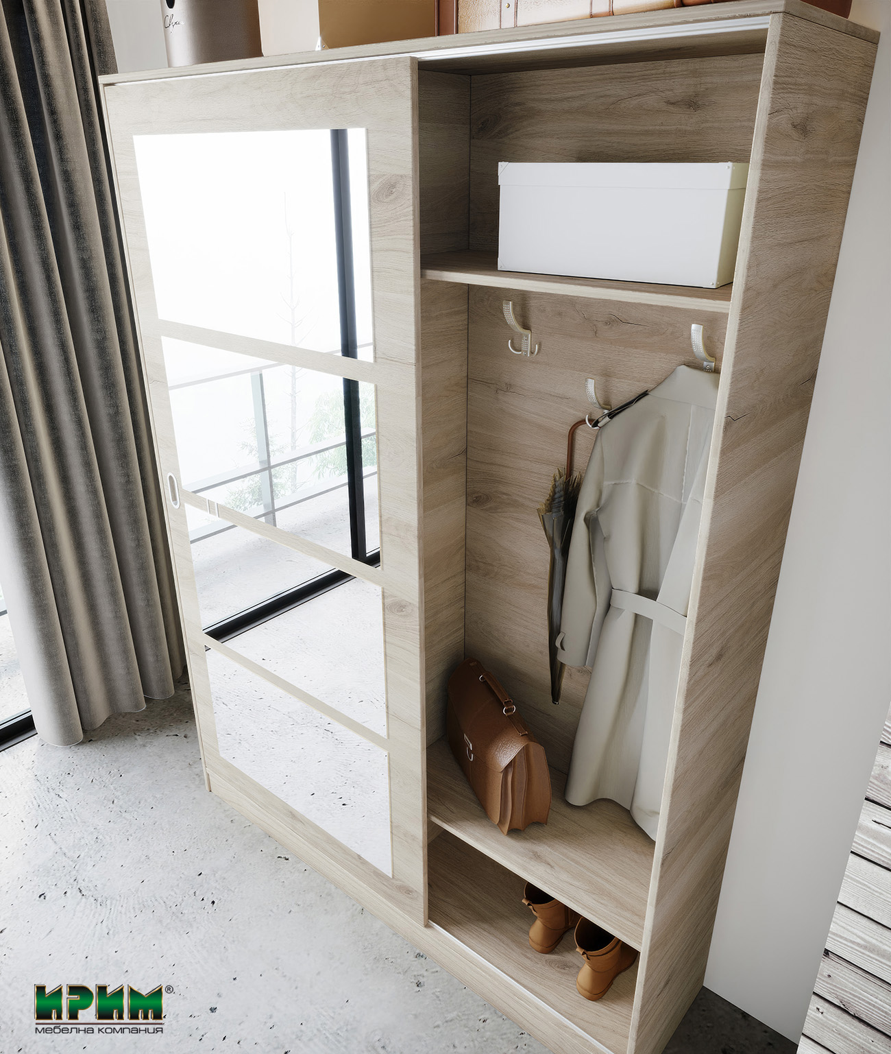 Светлият дървесен цвят и изчистените линии го правят универсално решение за модерни, минималистични, скандинавски или класически жилища. То ще внесе топлина в антрето, ще осигури ред в коридора и ще създаде приветлива атмосфера, която посреща с уют и стил.