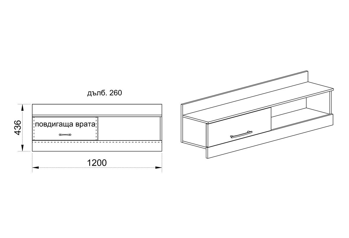 ● Ширина 1200 мм./ Дълбочина 260 мм./Височина 440 мм.