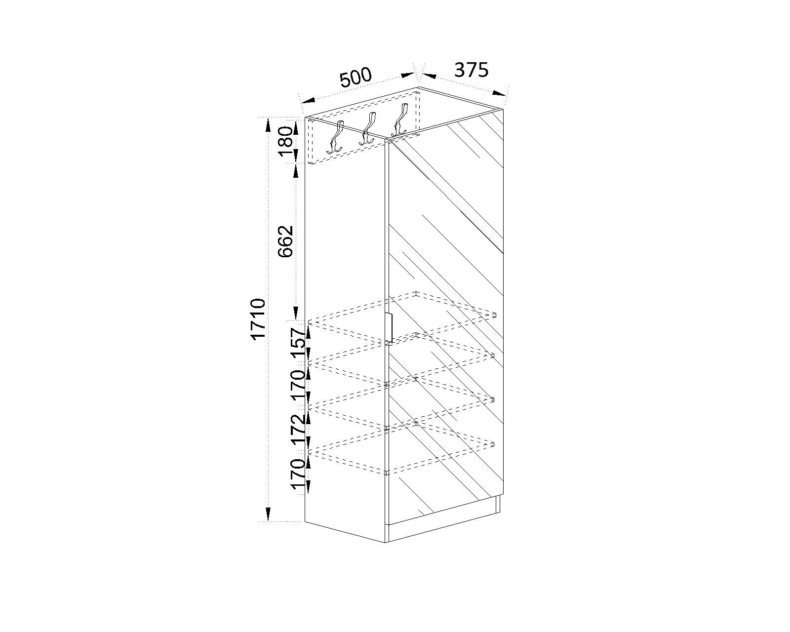 ● Ширина 500 мм./Дълбочина 375 мм./Височина 1710 мм.