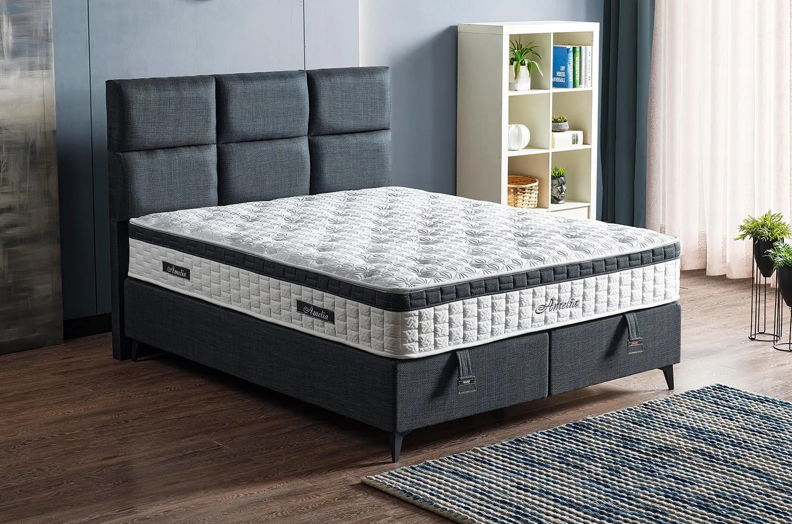 Освен естетика, Amelia носи и онова спокойствие, което идва от добре организираното пространство – повдигащ механизъм и обем за багаж, където сезонът може да “заспива” подреден, а стаята да диша по-свободно. Така тапицираната спалня не е просто визия, а истинска система за уют.