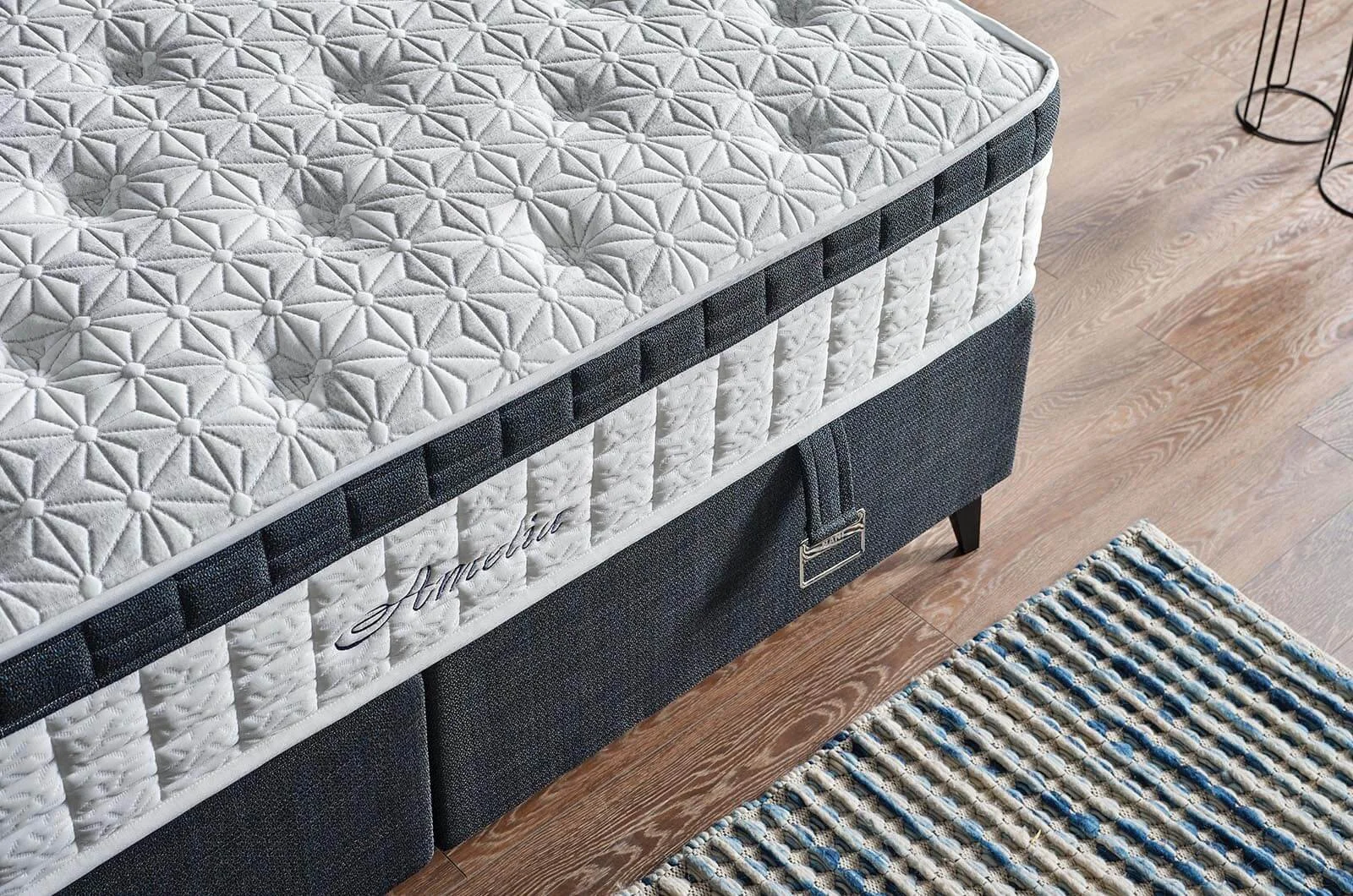 ✔ Върху тази стилна основа лежи матрак с богато прошита повърхност – мек релеф, който обещава комфорт още преди да сте се отпуснали.