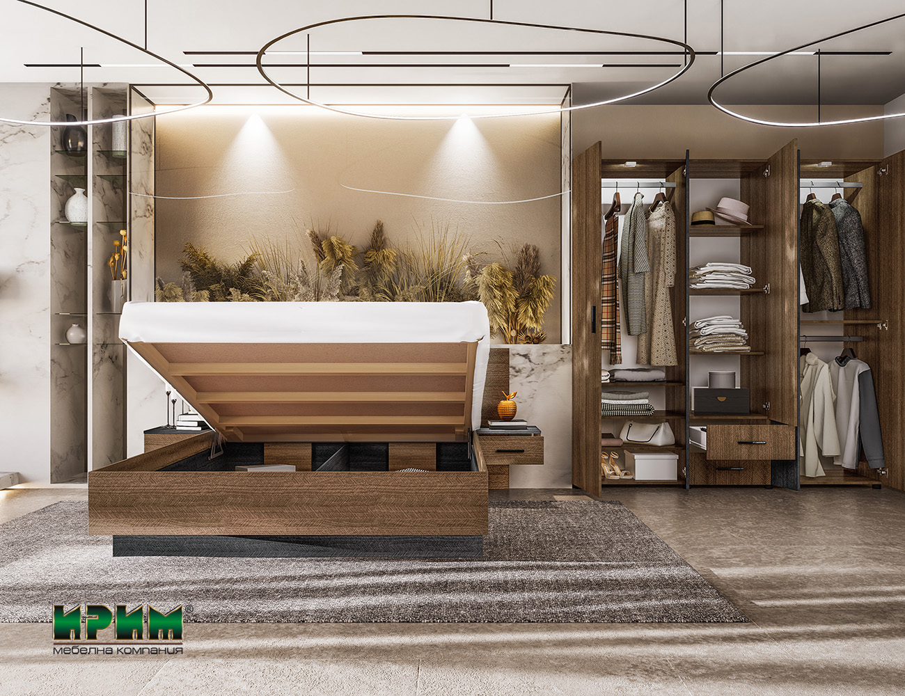 ● Мебели за спалня с плавно затваряне на вратите.