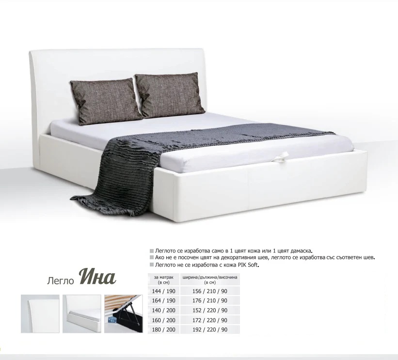 Вижте размерите и цените за легло Ина в допълнителните снимки към продукта.