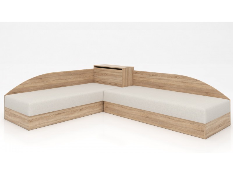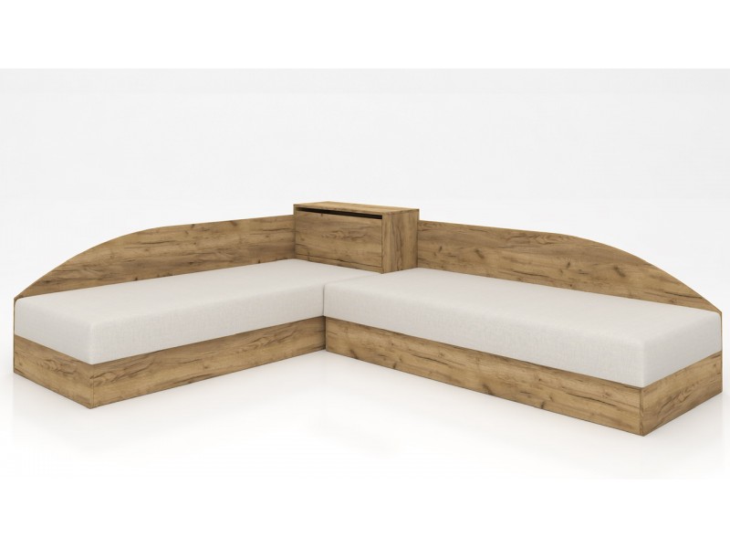 ● Ъглови легла с обща ракла, скосени странични табли и повдигащи механизми.